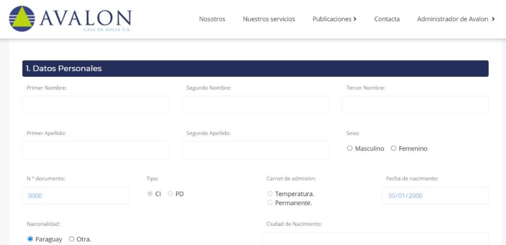 Captura de pantalla de la digitalización de procedimiento de apertura de cuenta en Avalon