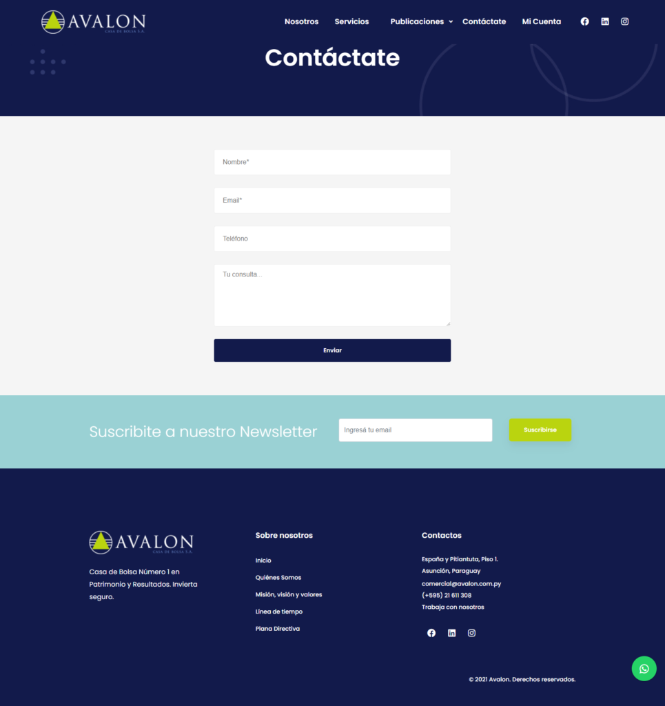 Dentro de los trabajos contratados, realizamos la renovación total del front-end de Avalon.com.py, utilizando los últimos estándares en diseño gráfico y experiencia de usuario. Implementamos una web 100% adaptable a los diferentes tamaños de pantallas, garantizando una experiencia óptima, independientemente del dispositivo del usuario (celulares, computadoras, tablets, etc).
