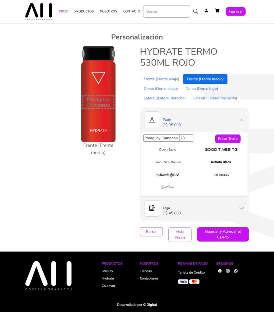 AH Cortes, empresa paraguaya dedicada al rubro de la personalización de termos y productos en general, decidió transformar su experiencia de compra a una totalmente digital, en la que el cliente puede personalizar su producto en vivo (visualizando los cambios automáticamente).